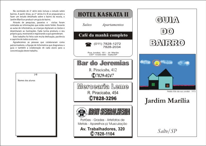 crianças digitaram e ilustraram o guia. Cada turma (2ªA e 2ªB) criou