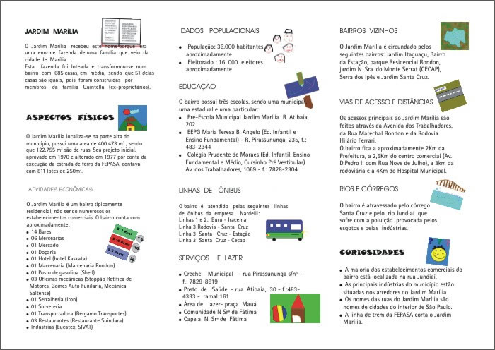 feitas pelas crianças, passeios e visitas no bairro – o Jardim Marília