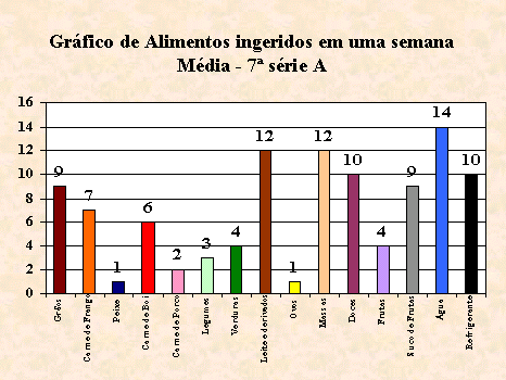 os tipos de alimentos ingeridos durante uma semana, conforme