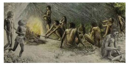 Um primo distante do Homo habilis, chamado Homo ergaster, foi o primeiro a fazer armas e a se especializar na caça. Para aumentar sua eficiência contra grandes presas, passou a viver em pequenos grupos. A necessidade de coordenar as táticas de caça obrigou o desenvolvimento da comunicação e das linguagens oral e gestual. O Homo erectus descendeu do H. ergaster e já tinha capacidade cerebral próxima à nossa. Foi a primeira espécie a controlar o fogo e, com isso, tornaram-se capazes de migrar para regiões de climas mais frios. Os hominídeos deixavam a África e partiam para a Europa e Ásia. Mas o H. erectus ainda não seria a espécie a dominar o mundo. Outra estava por surgir, também descendente do H. ergaster: o Homo sapiens primitivo.