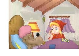 entrou na casa, e viu deitado na cama o Lobo que ele procurava